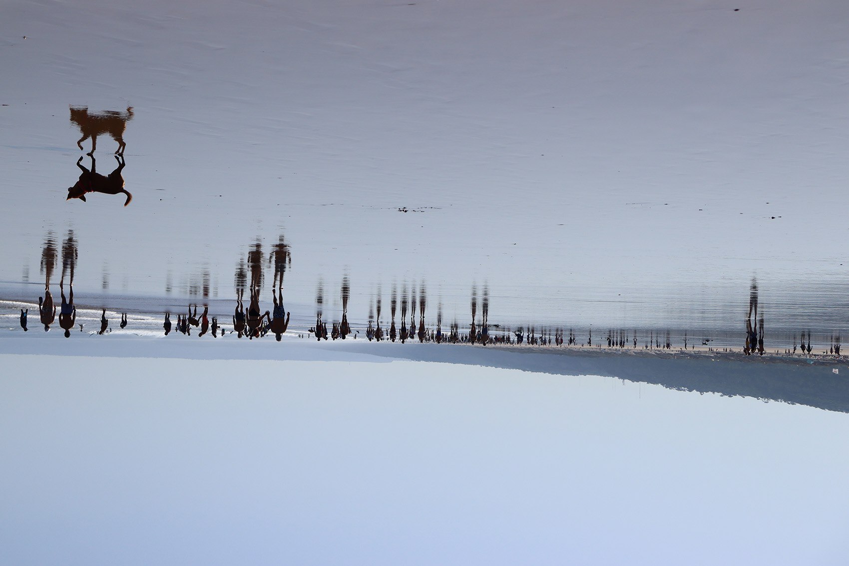 Between Worlds explores the liminal space where human presence dissolves into water, reflection, and light. On the shoreline, the ocean becomes a revelatory surface, reducing the figure to its essential trace, a shifting silhouette shaped by the quiet movement of water. These ephemeral forms evoke the fragility of existence and the subtle essence of lives unfolding. Between Worlds invites viewers to pause in this space of in-between, where the natural world quietly reflects who we are beneath the surface.
